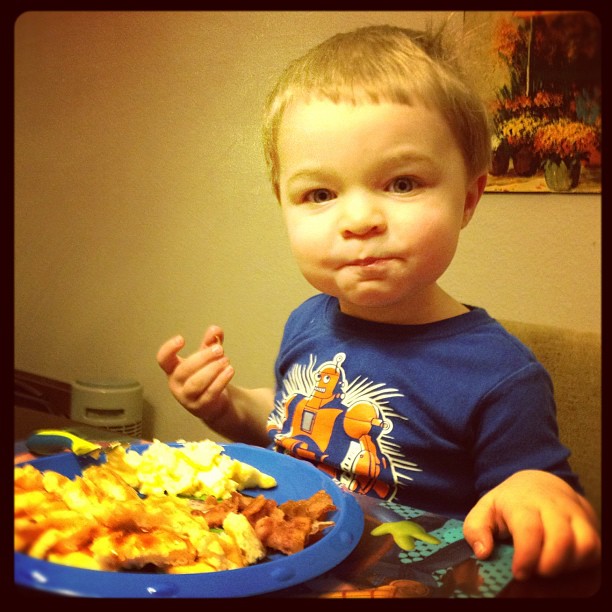 Fast forward to 5:30 am on February 14 - the alarm goes off. I crept out of bed to make a surprise Valentine's breakfast for Ricky - eggs, bacon, and heart-shaped waffles. I knew how much he appreciated breakfast when he told me, "When I was in the shower I smelled bacon and I got really excited!"
